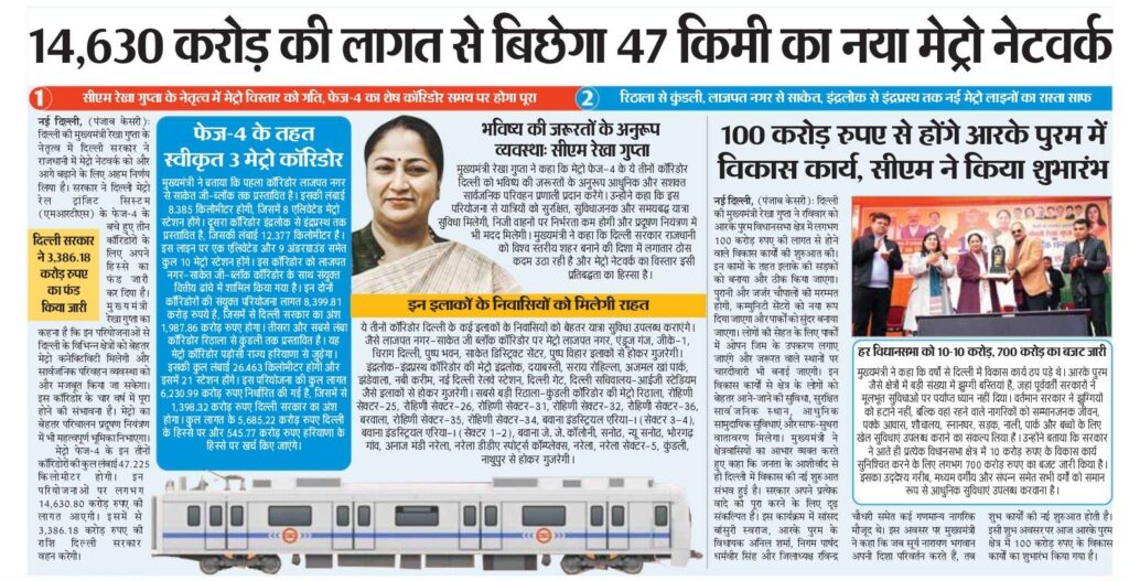 फेज-4 के अंतर्गत 3 मैट्रो कॉरिडोर स्वीकृत
